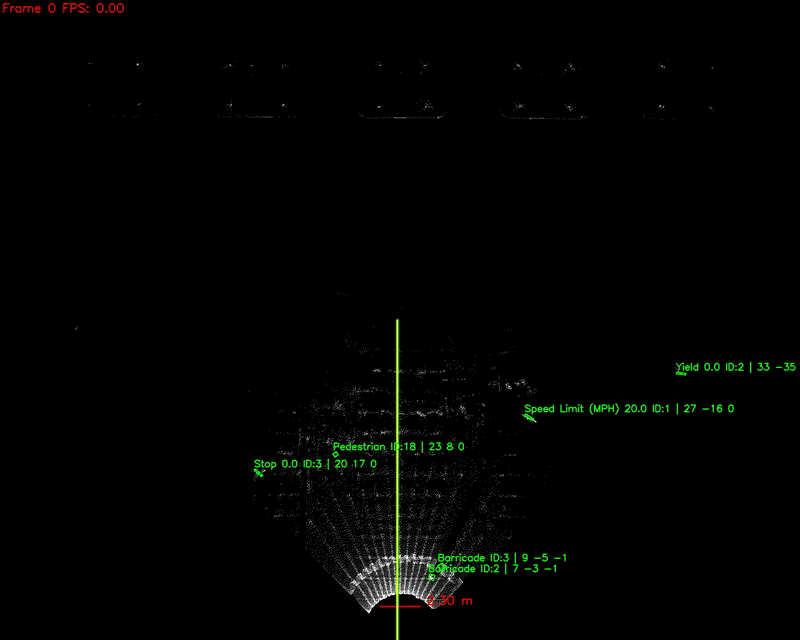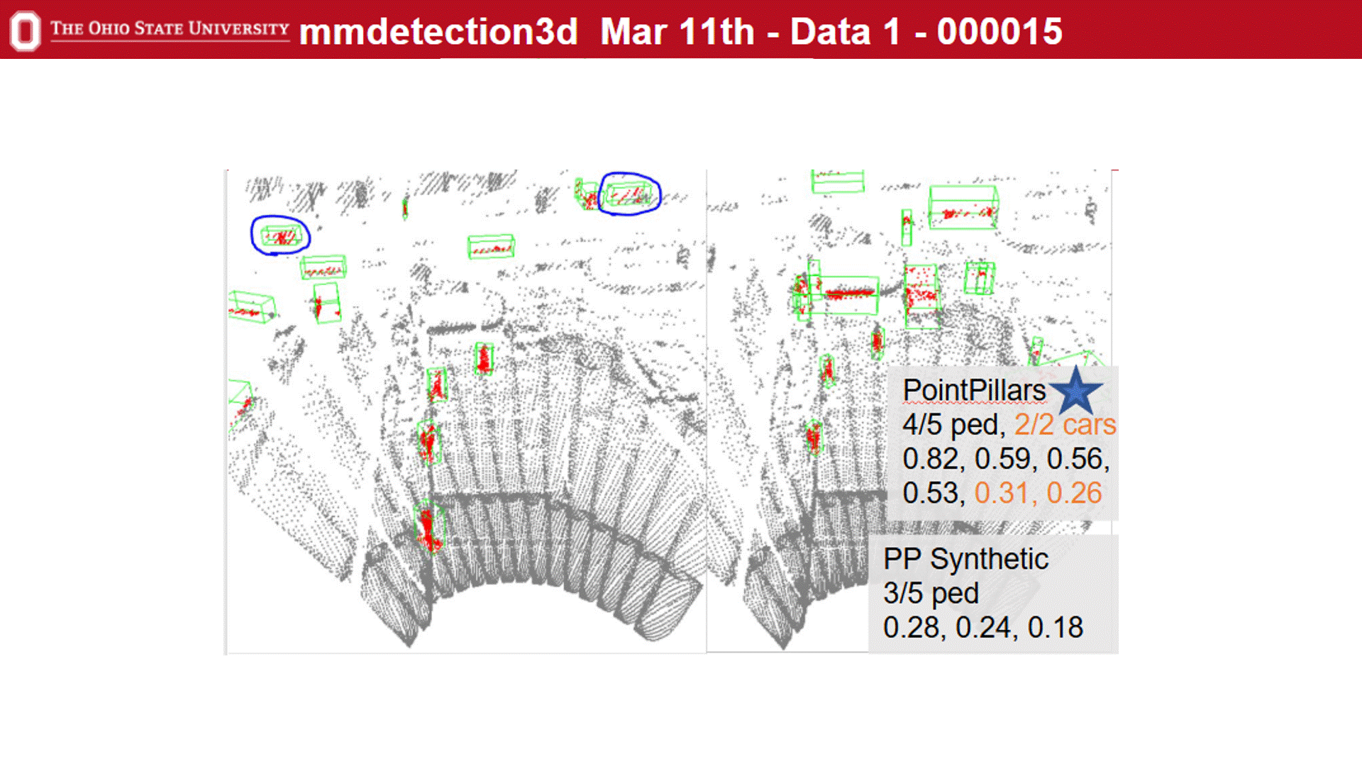 During my first year on the team, I evaluated various 3D object detectors comparing inference speed when ran only on Intel hardware, and their accuracy on our LiDARs provided by Cepton. We ultimately selected PointPillars through its close integration with mmdetection3d and ability to be optimized with OpenVINO to improve inference speed. The model was trained on synthetic data from AIODrive that was generated to be in the scan pattern of our Cepton LiDARs. As the 3D perception subteam lead, I also worked closely with my group to integrate a 3D multi-object tracker model, dynamics prediction, and other post-processing algorithms.